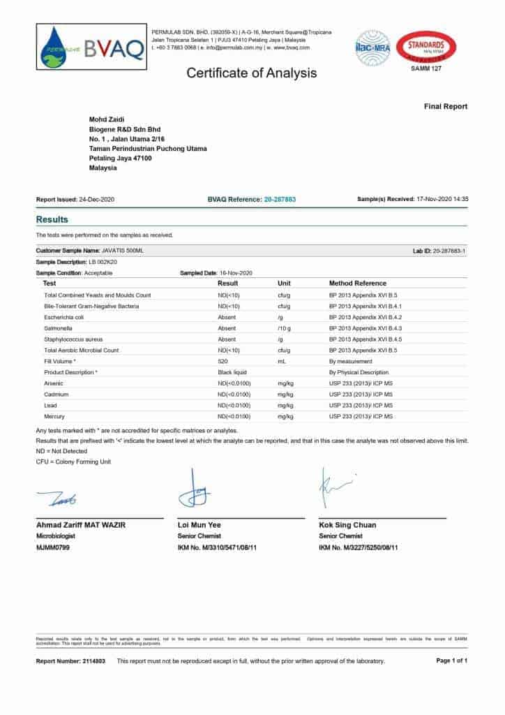 Jus Javatis merupakan produk berbentuk jus. Untuk pengambilan, 2 kali sehari iaitu 30 minit sebelum sarapan dan 2 jam selepas makan malam