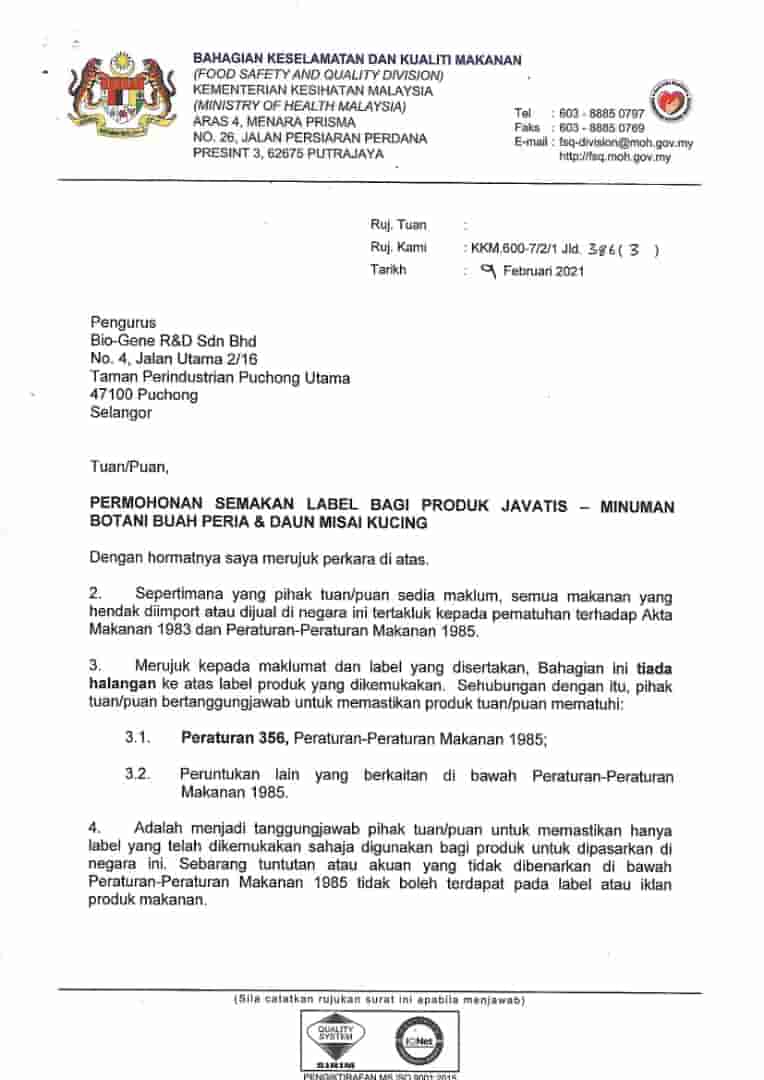 3) Jarakkan 2 jam masa pengambilan Jus Javatis dengan produk lain atau ubat