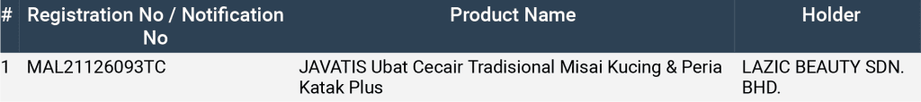 Tiada kesan sampingan. Telah diuji secara klinikal di makmal bertauliah dan mendapat kelulusan KKM dengan Nombor Mal: MAL21126093TC